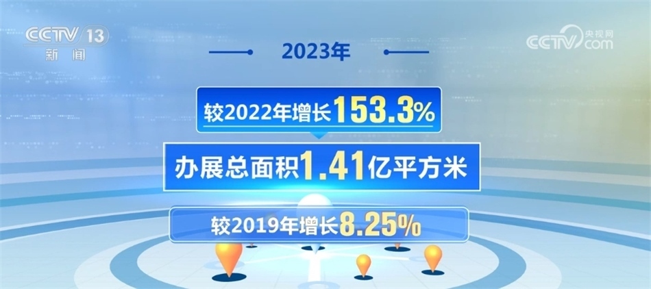 《中國展覽經(jīng)濟發(fā)展報告2023》統(tǒng)計數(shù)據(jù)顯示,2023年中國共舉辦經(jīng)貿(mào)類展會3923場,較2022年增長117.1%,較2019年增長10.6%;辦展總面積1.41億平方米,較2022年增長153.3%,較2019年增長8.25%。經(jīng)貿(mào)類展會數(shù)量和展出面積超越疫情前水平,展覽業(yè)呈現(xiàn)全面恢復態(tài)勢。