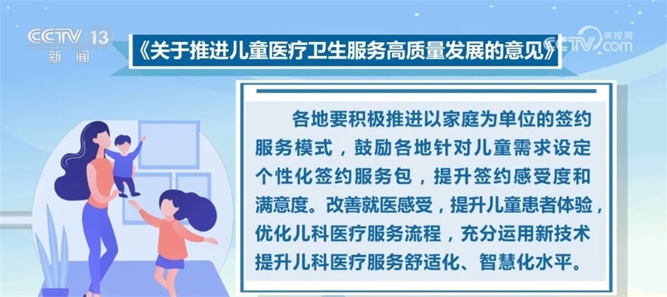 《意見》要求,各地要積極推進(jìn)以家庭為單位的簽約服務(wù)模式,鼓勵(lì)各地針對兒童需求設(shè)定個(gè)性化簽約服務(wù)包,提升簽約感受度和滿意度。改善就醫(yī)感受,提升兒童患者體驗(yàn),優(yōu)化兒科醫(yī)療服務(wù)流程,充分運(yùn)用新技術(shù)提升兒科醫(yī)療服務(wù)舒適化、智慧化水平。