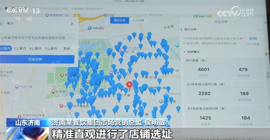 濟(jì)南某餐飲集團(tuán)市場(chǎng)營(yíng)銷總監(jiān) 侯明敬:我們通過(guò)“濟(jì)南公共數(shù)據(jù)開(kāi)放網(wǎng)”上的“泉城商業(yè)選址”應(yīng)用,精準(zhǔn)直觀進(jìn)行了店鋪選址。比如說(shuō)兩公里內(nèi)餐飲同行有479家,人口總量超過(guò)了24萬(wàn)人,其中31—50歲的比例最大,占到了29.9%,這和我們這家餐廳比較適合商務(wù)聚會(huì)、家庭聚會(huì)的市場(chǎng)定位非常吻合。