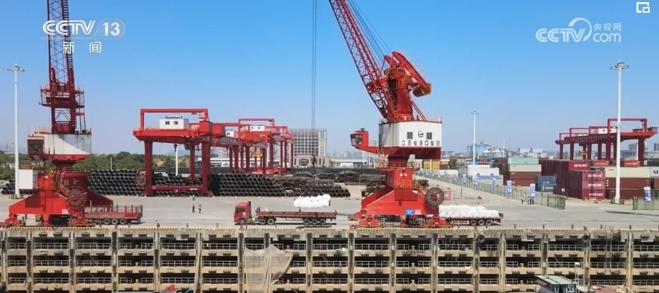 依托贛江水道承接南北、通江達(dá)海的獨(dú)特優(yōu)勢,江西建設(shè)碼頭、物流園、航道等20多個(gè)水運(yùn)項(xiàng)目。這幾天,在南昌龍頭崗碼頭,成噸從國外進(jìn)口的鋰礦石、北方豐收的玉米大豆等作物正在卸載。