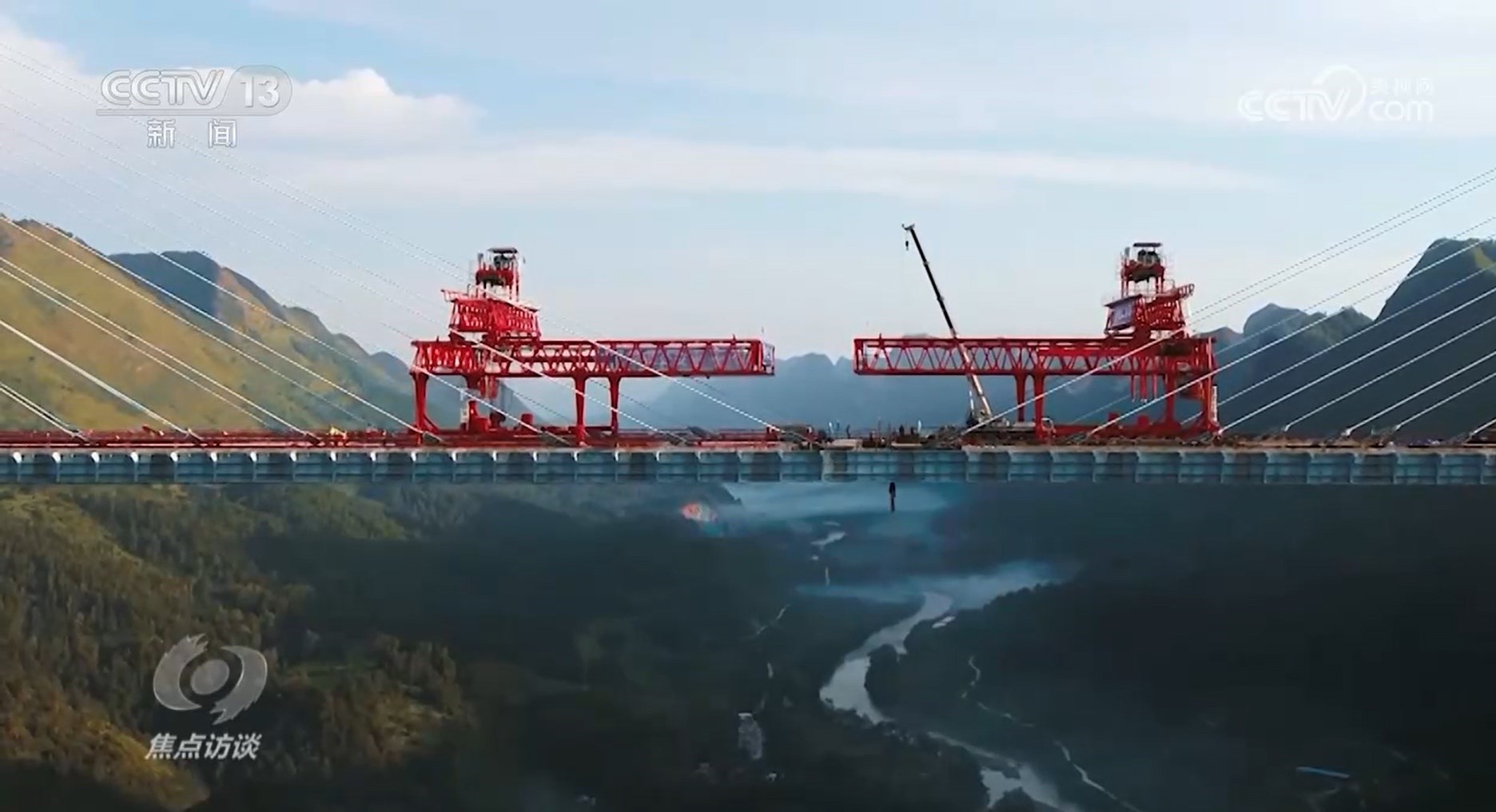 杭瑞高速貴州段,北盤江第一橋,擁有565米的高度和720米的主跨。建造時(shí),主跨被拆分成60個(gè)160噸重的節(jié)段,需要在近600米高空進(jìn)行拼接、合龍。