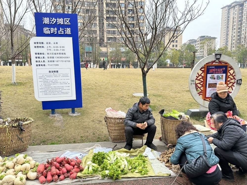 去年4月以來,南川區(qū)探索在小區(qū)周邊等區(qū)域設(shè)立“潮汐攤區(qū)”,目前已設(shè)置攤區(qū)31處、攤位2100余個,引導(dǎo)瓜果農(nóng)、流動菜農(nóng)、經(jīng)營攤販免費入位規(guī)范經(jīng)營,實行“攤位+攤主自治”模式,早中晚定時、規(guī)范定點、統(tǒng)一管理?!斑@讓居民在家門口就能吃上新鮮瓜果蔬菜,也有助于規(guī)范流動攤販管理?!蹦洗▍^(qū)城市管理局局長姚濤說。