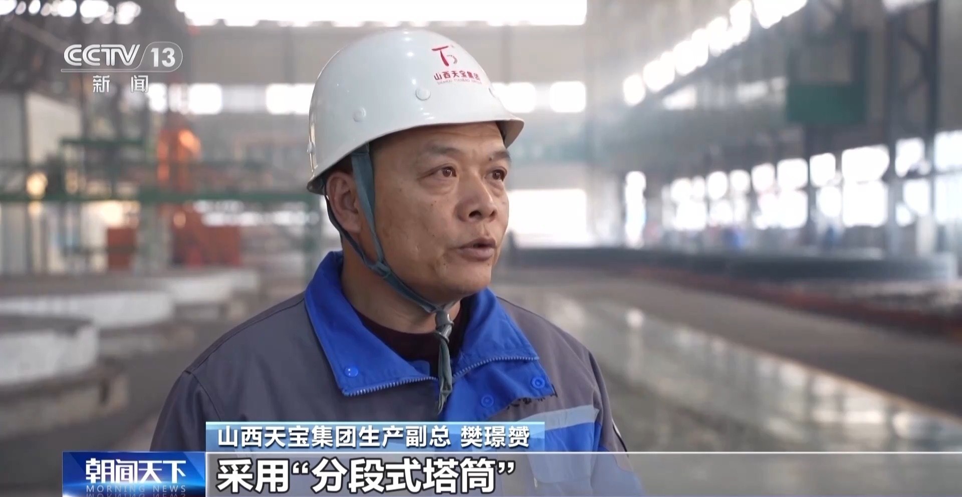 山西天寶集團(tuán)生產(chǎn)副總 樊璟赟:解決運(yùn)輸難的問題,采用“分段式塔筒”。我們和鏈主通過多次試驗(yàn),目前我們能達(dá)到分開以后它的變形量在1毫米之內(nèi)。