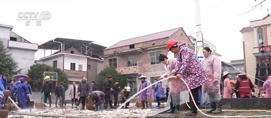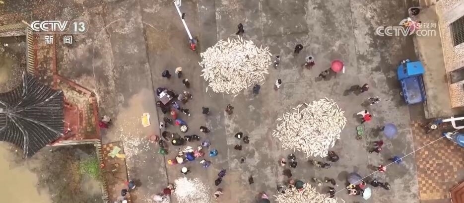 日前,在江西吉安永新縣高市鄉(xiāng)塘內(nèi)村,一場分魚活動正在舉行。村里的男女老少齊上陣,將剛剛打撈上來的魚鋪滿廣場,按照種類和大小分好,一起共享收獲。