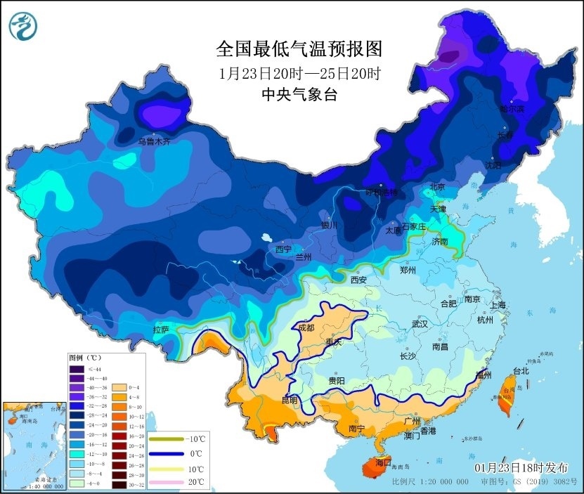 央視網(wǎng)消息:中央氣象臺1月23日18時繼續(xù)發(fā)布低溫藍(lán)色預(yù)警:預(yù)計,1月24日至25日,貴州、湖南中南部、江西中南部、浙江中南部、福建、廣東、廣西東部等地最低氣溫或平均氣溫較歷史同期偏低5℃以上,其中,貴州中東部、湖南中部、江西中南部、浙江南部、福建西部、廣東西南部、廣西東南部等地的部分地區(qū)偏低7℃以上,最低氣溫0℃線位于廣西北部、廣東北部一帶 。