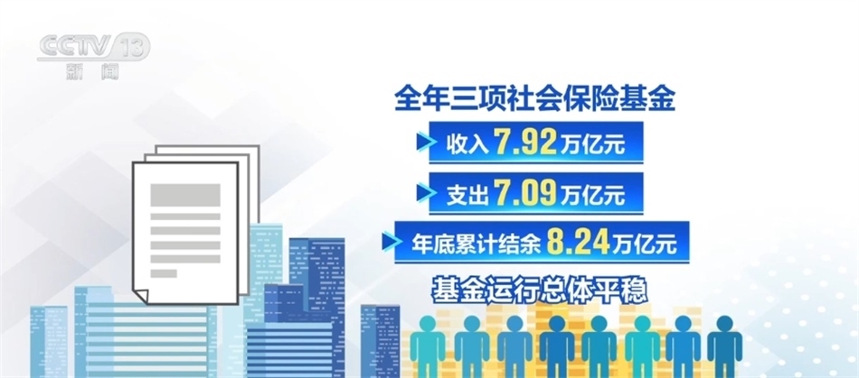 截至2023年底,我國(guó)基本養(yǎng)老、失業(yè)、工傷保險(xiǎn)參保人數(shù)分別為10.66億人、2.44億人、3.02億人,同比增加1336萬人、566萬人、1054萬人。全年三項(xiàng)社會(huì)保險(xiǎn)基金收入7.92萬億元,支出7.09萬億元,年底累計(jì)結(jié)余8.24萬億元,基金運(yùn)行總體平穩(wěn)。