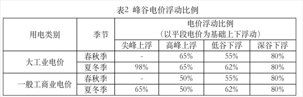?。ㄈ┱{(diào)整峰谷電價浮動比例,具體見表2。浮動比例以平段電價為基礎(chǔ),平段電價包含上網(wǎng)電價、上網(wǎng)環(huán)節(jié)線損費(fèi)用、系統(tǒng)運(yùn)行費(fèi)用、輸配電價(不含容(需)電價)、政府性基金及附加。