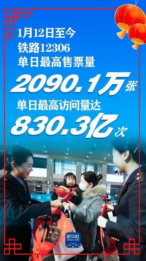 1月26日是春運首日。記者從鐵路12306獲悉,今年春運旅客購票出行需求旺盛,自1月12日鐵路春運售票啟動以來,已累計發(fā)售火車票2.3億張。
