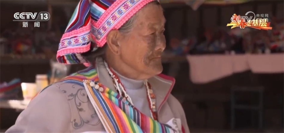現(xiàn)在獨(dú)龍江鄉(xiāng),近千位獨(dú)龍族婦女和她一樣,在用傳統(tǒng)的方式編織著走向世界的獨(dú)龍?zhí)海钗氖四棠叹褪瞧渲兄?,她是目前?dú)龍族僅有的17位文面女中的一位。當(dāng)記者找到她時(shí),老奶奶正在熟練得玩手機(jī)。自從2022年5G網(wǎng)絡(luò)覆蓋了獨(dú)龍江鄉(xiāng)的6個(gè)行政村后,李文仕奶奶除了務(wù)農(nóng)織布、唱歌跳舞,還培養(yǎng)了一個(gè)新的愛(ài)好,就是網(wǎng)上沖浪。
