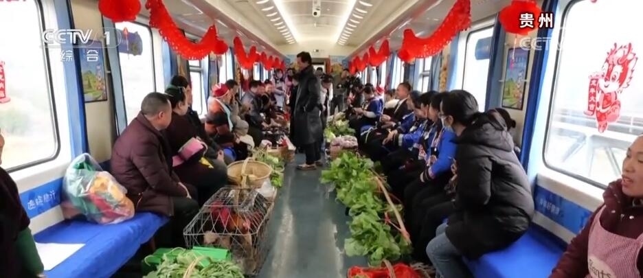 買年貨,除了商超、集市,批發(fā)市場,還可以在火車上。在貴州,有一趟往返于貴陽與玉屏之間的“慢火車”5640次列車,里面專設了一個農特產品車廂。新春臨近,列車上的農特產品車廂變得熱鬧起來,村民們將自家養(yǎng)殖的土雞、雞蛋,熏制的香腸、臘肉,以及水果、蔬菜帶上列車,向旅客現(xiàn)場售賣,車廂里喜氣洋洋。