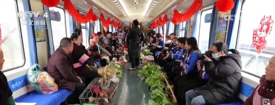 在貴州,有一趟往返于貴陽(yáng)與玉屏之間的“慢火車”5640次列車,里面專設(shè)了一個(gè)農(nóng)特產(chǎn)品車廂。新春臨近,村民們將自家養(yǎng)殖的土雞、雞蛋,熏制的香腸、臘肉,以及水果、蔬菜帶上列車,向旅客現(xiàn)場(chǎng)售賣。
