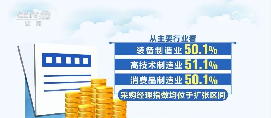 1月份,21個制造業(yè)行業(yè)中有13個行業(yè)采購經(jīng)理指數(shù)環(huán)比上升,1個行業(yè)環(huán)比持平。從主要行業(yè)看,裝備制造業(yè)50.1%、高技術制造業(yè)51.1%、消費品制造業(yè)50.1%,采購經(jīng)理指數(shù)均位于擴張區(qū)間。