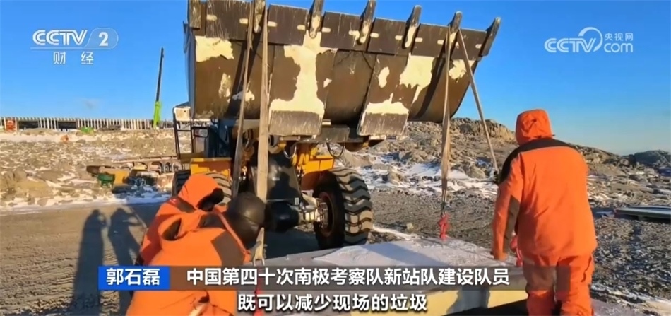 中國第四十次南極考察隊新站隊建設隊員 郭石磊:我們這個停機坪采用的是國內加工生產、現(xiàn)場拼裝的方式,既可以減少現(xiàn)場的垃圾,也可以讓現(xiàn)場的施工速度大大提升,按計劃,三到五天完成停機坪的建設。