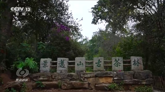 云南普洱市景邁山制茶技藝省級(jí)傳承人南康:“山頂上是我們的神山,神山四周都是森林,古村落和古茶林圍繞神山分布,古茶林海拔最低的地方是種糧食作物的地方。”