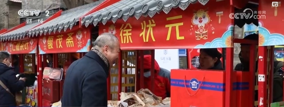 線上有“網(wǎng)上年貨節(jié)”, 線下有2024全國(guó)“老字號(hào)嘉年華”。在山東淄博,“老字號(hào)國(guó)貨潮品年貨大集”在周村古商城鳴鑼開(kāi)市,匯集了淄博50余家老字號(hào)企業(yè)300余種產(chǎn)品。
