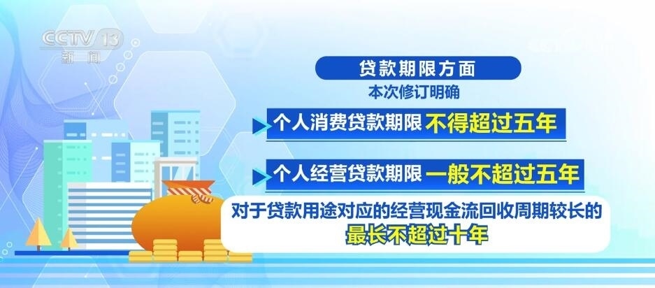 在貸款期限方面,本次修訂明確:固定資產(chǎn)貸款期限一般不超過十年。流動(dòng)資金貸款期限原則上不超過三年,對(duì)經(jīng)營現(xiàn)金流回收周期較長的,最長不超過五年。