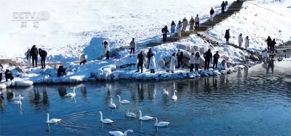 總臺(tái)記者 李楠:這里就是天山環(huán)抱中的新疆賽里木湖景區(qū),周圍的群山和湖面仍舊被冰雪覆蓋。在我身后正在舉辦冰雪“那達(dá)慕”迎春活動(dòng),當(dāng)?shù)氐霓r(nóng)牧民群眾和來自全國各地的游客正參與其中。