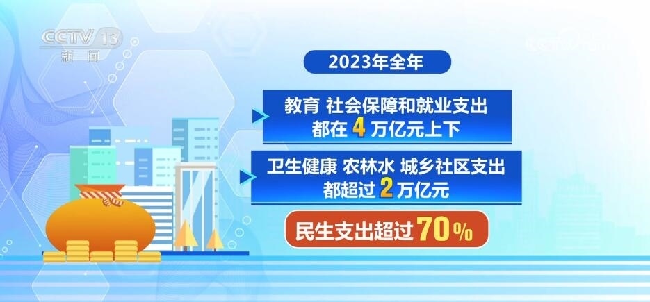 那么,2023年超過(guò)27萬(wàn)億元的錢(qián)都花到了哪些方面呢?根據(jù)最新公布的數(shù)據(jù),去年全年,教育、社會(huì)保障和就業(yè)支出都在4萬(wàn)億元上下,衛(wèi)生健康、農(nóng)林水、城鄉(xiāng)社區(qū)支出都超過(guò)了2萬(wàn)億元,粗粗算一下將近15萬(wàn)億元,也就是說(shuō),民生支出超過(guò)了70%。
