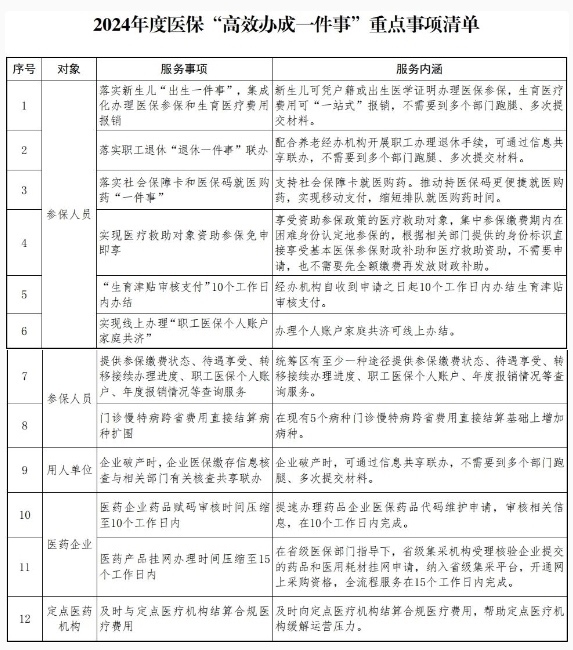 為貫徹落實《國務(wù)院關(guān)于進一步優(yōu)化政務(wù)服務(wù)提升行政效能推動“高效辦成一件事”的指導(dǎo)意見》(國發(fā)〔2024〕3號,下文簡稱《指導(dǎo)意見》),精細(xì)化科學(xué)化常態(tài)化優(yōu)化醫(yī)保服務(wù),提高群眾、企業(yè)和醫(yī)藥機構(gòu)獲得感,國家醫(yī)療保障局今天(2月9日)發(fā)布關(guān)于在醫(yī)療保障服務(wù)領(lǐng)域推動“高效辦成一件事”的通知,著力提供更加便捷高效的醫(yī)療保障服務(wù)。