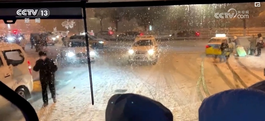 看到一些帶著小孩和老人的乘客沒能擠上車,站在風(fēng)雪中焦急等候,黃勁松和隊(duì)友們走上前,帶著他們前往公交站場(chǎng),提前上車等候發(fā)班。凌晨1時(shí)10分,第二趟加班車從車場(chǎng)出發(fā)了。
