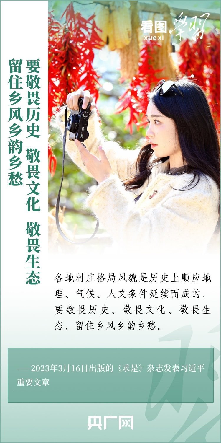 2024年中央一號文件近日發(fā)布,要求各地學習運用“千村示范、萬村整治”工程經(jīng)驗,有力有效推進鄉(xiāng)村全面振興。文件明確提出,要以確保國家糧食安全、確保不發(fā)生規(guī)模性返貧為底線,以提升鄉(xiāng)村產(chǎn)業(yè)發(fā)展水平、提升鄉(xiāng)村建設水平、提升鄉(xiāng)村治理水平為重點,打好鄉(xiāng)村全面振興漂亮仗,繪就宜居宜業(yè)和美鄉(xiāng)村新畫卷。《看圖學習》特梳理近兩年習近平總書記關于建設宜居宜業(yè)和美鄉(xiāng)村的重要論述,一起來學習!