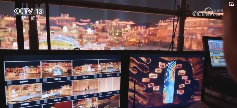 時間緊是喀什分會場面臨的一個很大的問題。因為時差原因,喀什的天黑時間將近到晚上8時。為了解決這個難題,讓舞臺呈現(xiàn)出最好的效果,導(dǎo)演組通過一套預(yù)演系統(tǒng),在白天也能調(diào)試晚上的燈光舞美效果,同時,還可以通過觀眾角度、導(dǎo)播角度來實時調(diào)整舞臺上的呈現(xiàn)效果。