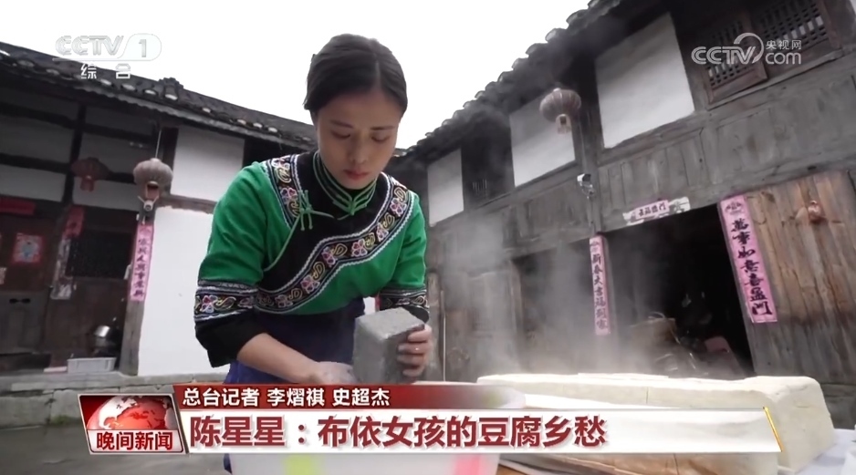 在貴州省貴陽市烏當區(qū)偏坡布依族鄉(xiāng),陳星星正在錄制最新一期短視頻,通過布依族山歌推廣市級非遺豆制品制作技藝。在當?shù)兀垢淖龇ǘ喾N多樣:搗碎、糅團、油炸、加入折耳根,豆腐圓子外焦里嫩。切薄塊、擺盤、佐以豬耳,鹵豆腐拼盤口味豐富。此外還有農(nóng)家三寶、絲絲相扣、木耳豆腐等菜式。2023年,碩士畢業(yè)的陳星星,沒有像鄉(xiāng)親們預期的那樣,考個城里體面的工作,而是戴上圍裙、挎上竹籃,回到群山環(huán)抱的家鄉(xiāng),做起了灰豆腐事業(yè)。