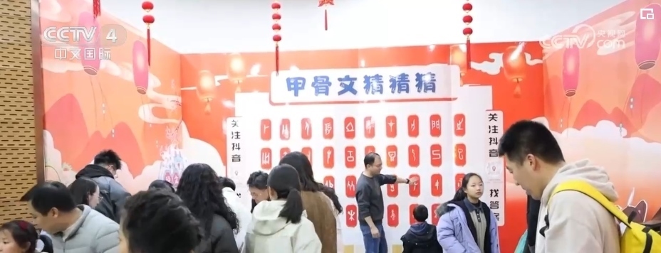 博物館內(nèi)的漢字展、漢服秀、甲骨文韻律操、文創(chuàng)集市等豐富多彩的節(jié)目,也給游客帶來(lái)了不一樣的新春體驗(yàn)和感受。識(shí)讀甲骨文,能讓大家對(duì)漢字演變過(guò)程有更加直觀(guān)的認(rèn)識(shí)和了解,在“甲骨文猜猜猜”游戲中,游客們認(rèn)真觀(guān)察、思考展板上一個(gè)個(gè)甲骨文所對(duì)應(yīng)的漢字,感受著古人的智慧和漢字的靈性與博大。
