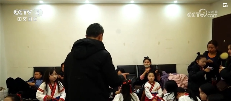 學生們要放寒假了,郭云兵的寒假計劃已經排的滿滿當當,其中一項就是帶領朗誦團參加當地少兒春晚的錄制。許多新加入的成員還是第一次站上舞臺,上場前郭云兵給他們加油打氣。