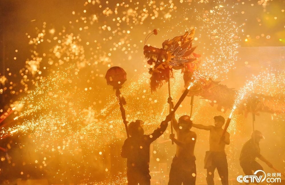 2024年2月14日,貴州省銅仁市印江土家族苗族自治縣新寨鎮(zhèn)凱望村舉行舞龍噓花賀新春活動(dòng)。鑼鼓喧天,土家族村民揮舞著4條彩色長(zhǎng)龍?jiān)趪u花中穿梭舞動(dòng),向村民們拜年共賀新春,呈現(xiàn)出熱鬧喜慶的節(jié)日氣氛。