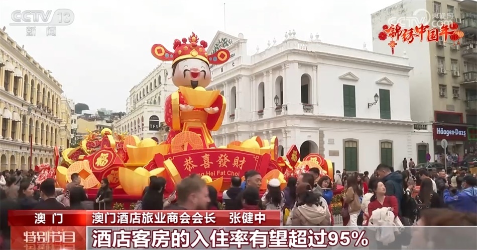 央視網(wǎng)消息:今年春節(jié)期間,澳門特區(qū)政府充分利用本地的歷史文化資源,安排了豐富多彩的春節(jié)賀歲活動,這也吸引了眾多海內(nèi)外游客前來旅游觀光,入境澳門的旅客量已突破百萬人次。
