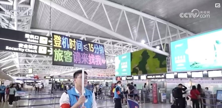 還有15分鐘登機(jī),這在平時(shí)不算晚。可在初八的出港高峰里,如果沒有志愿者的及時(shí)指引,旅客就很有可能錯(cuò)過飛機(jī)。