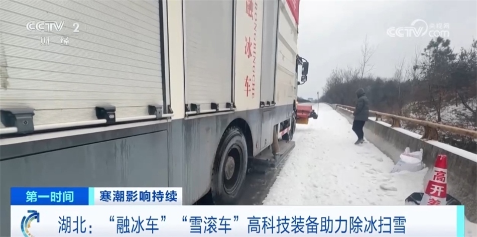 這是湖北隨縣引進(jìn)的“雪滾車”,作業(yè)時(shí),前端滾軋利用高密度、高彈性的鋼絲滾刷高速旋轉(zhuǎn),先把表層積雪、浮冰甩出車道,再用滾軋內(nèi)圈的沖擊輥輪把冰打碎,最后由滾刷把殘雪、殘冰掃向路邊。