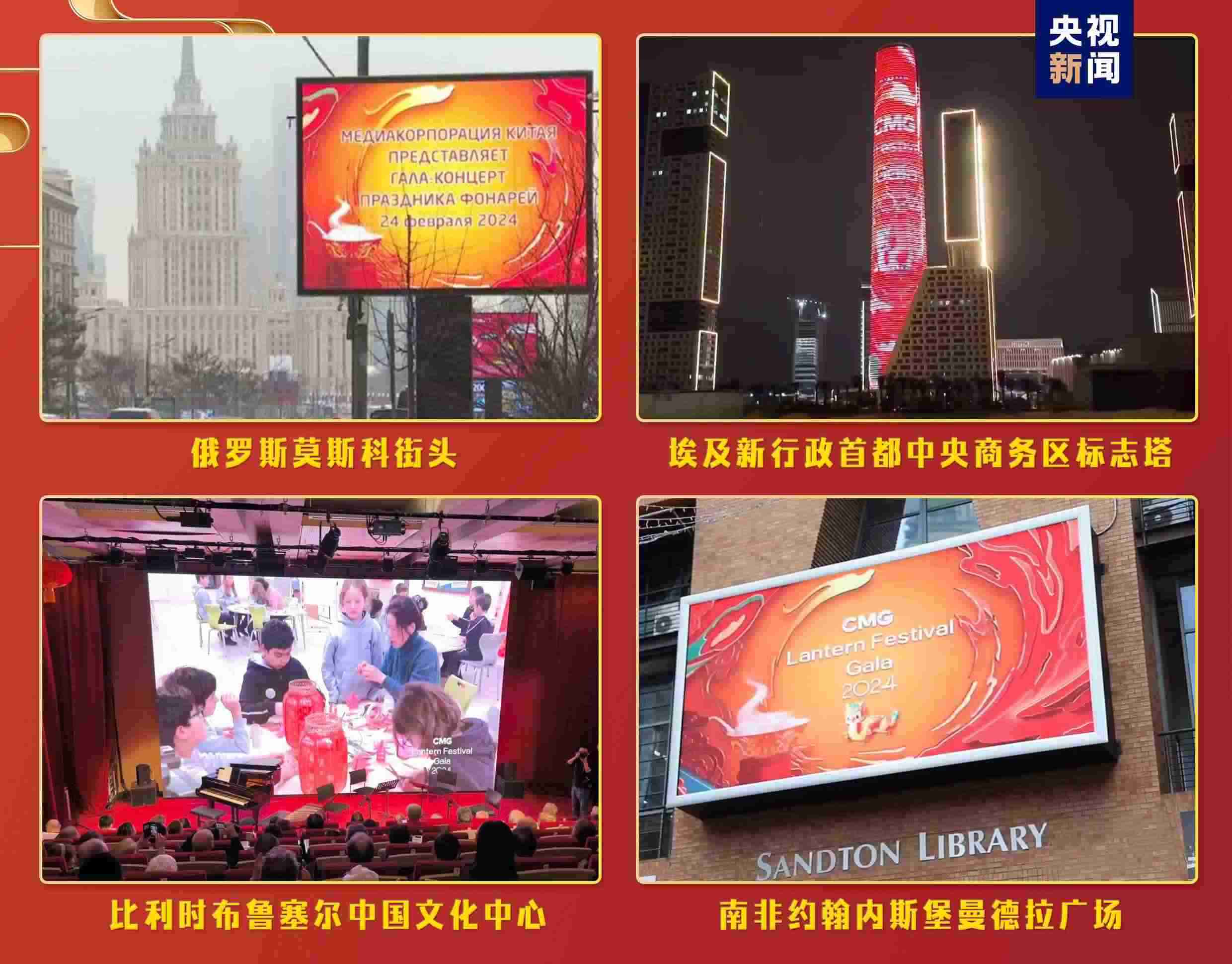 “海外千屏”持續(xù)閃耀,跨越山海點(diǎn)亮全球地標(biāo)。充滿濃郁中國(guó)年味兒的《2024年元宵晚會(huì)》宣傳片登陸美國(guó)、德國(guó)、意大利、俄羅斯、南非、巴西、阿聯(lián)酋等全球17個(gè)國(guó)家、25座城市的2627塊戶外大屏和院線銀幕。意大利米開(kāi)朗琪羅廣場(chǎng)、非洲第一高樓——埃及新行政首都中央商務(wù)區(qū)標(biāo)志塔等地標(biāo)大屏亮起“中國(guó)紅”,帶當(dāng)?shù)孛癖姵两礁惺苤袊?guó)節(jié)日的喜慶氛圍。