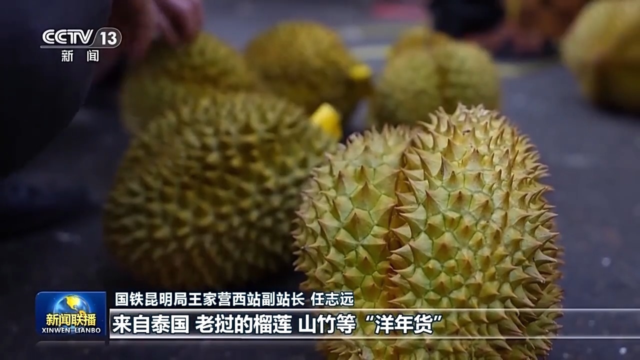 國(guó)鐵昆明局王家營(yíng)西站副站長(zhǎng) 任志遠(yuǎn):今年以來(lái),車站進(jìn)出口貨物明顯增加,來(lái)自泰國(guó)、老撾的榴蓮、山竹等“洋年貨”源源不斷運(yùn)抵。國(guó)內(nèi)的“國(guó)貨潮牌”陸續(xù)運(yùn)往東南亞國(guó)家。