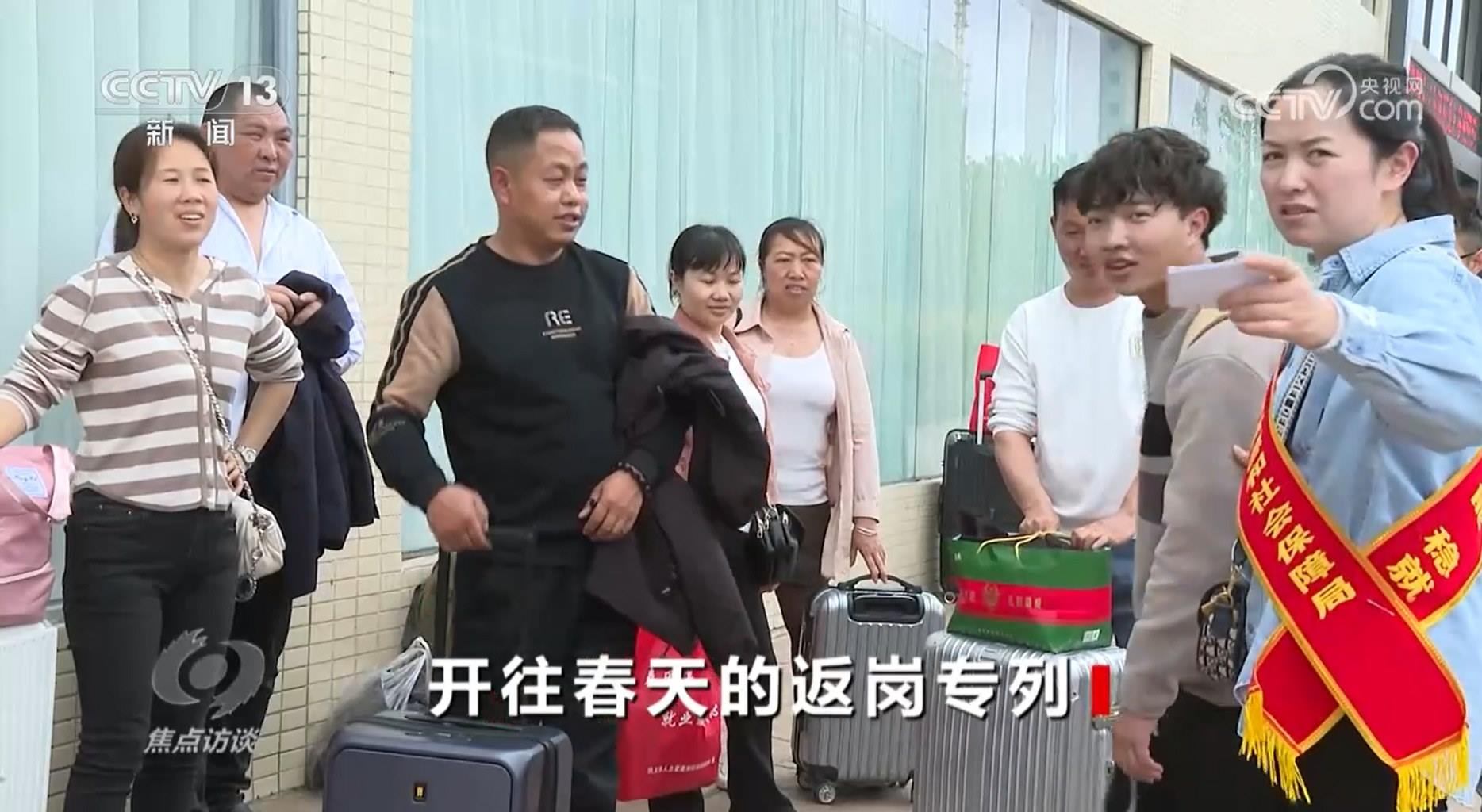 央視網(wǎng)消息(焦點(diǎn)訪談):春節(jié)假期一過(guò),各地迎來(lái)了務(wù)工人員返崗高峰期。各地各部門組織的返崗專列、專車、專機(jī),頻繁穿梭在繁忙的交通線上。作為勞務(wù)輸出大省,貴州省跨省務(wù)工的農(nóng)村勞動(dòng)力常年動(dòng)態(tài)保持在600萬(wàn)人左右,務(wù)工收入占到了農(nóng)村家庭總收入四成以上,占脫貧勞動(dòng)力家庭收入七成以上。大量的務(wù)工人員集中在節(jié)后要趕往千里之外的工作地點(diǎn),有的還要找崗位,怎么幫助他們呢?