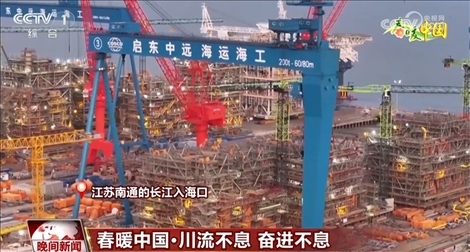 在江蘇南通的長江入???,一個個造型各異的“巨無霸”讓人震撼。眼前的這艘海上浮式生產(chǎn)儲油輪已經(jīng)進入最后的模塊吊裝施工階段。與此同時,自升式風電安裝船、全球最大集裝箱船等重點高端產(chǎn)品不斷取得突破。長江入??谑墙K點也是起點,所謂突破就是將終點當成起點,不停出發(fā)。