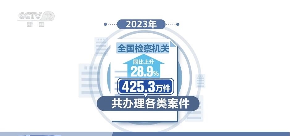 2023年,全國檢察機(jī)關(guān)共辦理各類案件425.3萬件,同比上升28.9%。