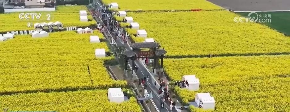 除了“花田火鍋”,在以油菜花田為背景的鄉(xiāng)村道路上,各類裝滿當(dāng)?shù)靥厣r(nóng)產(chǎn)品的攤位依次擺開。游客們迎著花香趕大集,帶走春日特有的伴手禮。