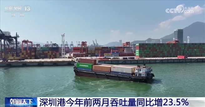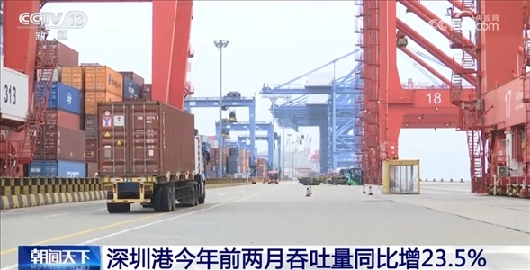 港口是國民經(jīng)濟(jì)發(fā)展的“晴雨表”,今年以來,深圳港迎來海運出貨高峰。據(jù)深圳市交通運輸局統(tǒng)計,今年前兩個月,深圳港集裝箱吞吐量達(dá)483萬標(biāo)箱,同比增長23.5%。