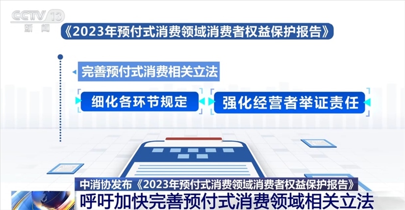 央視網(wǎng)消息:中國消費(fèi)者協(xié)會(huì)3月12日發(fā)布《2023年預(yù)付式消費(fèi)領(lǐng)域消費(fèi)者權(quán)益保護(hù)報(bào)告》(以下簡稱《報(bào)告》),呼吁加快完善預(yù)付式消費(fèi)領(lǐng)域相關(guān)立法,強(qiáng)化經(jīng)營者的舉證責(zé)任,落實(shí)對(duì)違法經(jīng)營者的信用約束和懲戒措施。