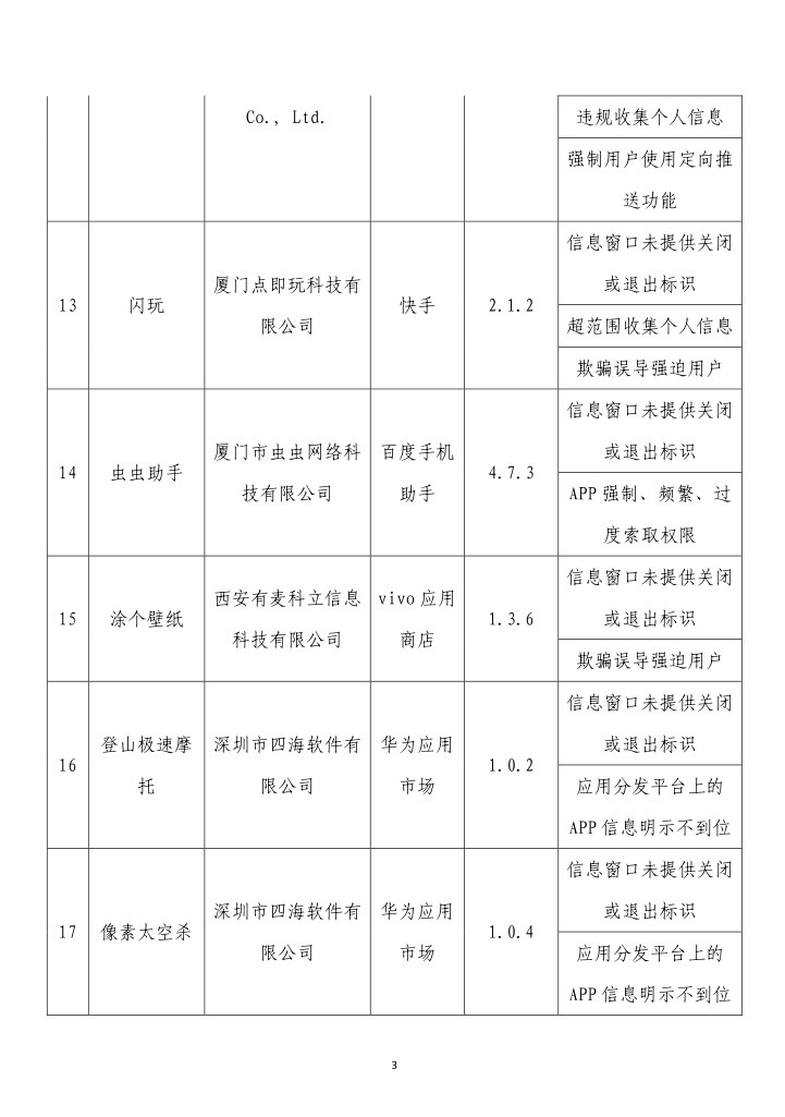 央視網(wǎng)消息:據(jù)工業(yè)和信息化部網(wǎng)站消息,工業(yè)和信息化部信息通信管理局3月14日公布《關(guān)于侵害用戶權(quán)益行為的APP(SDK)通報(bào)(2024年第2批,總第37批)》: