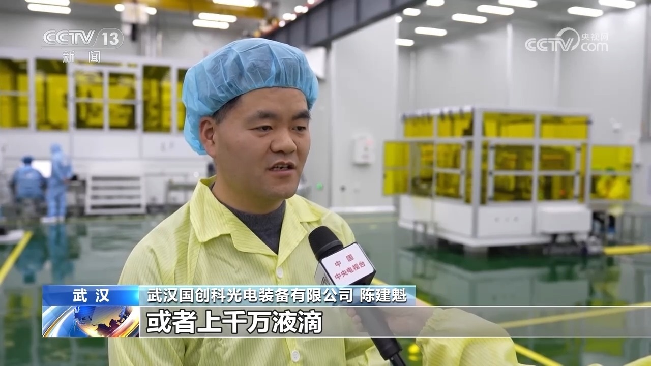 武漢國(guó)創(chuàng)科光電裝備有限公司陳建魁介紹,叫做噴墨打印的技術(shù),像我們一個(gè)手機(jī)屏,一個(gè)屏幕上就需要幾百萬(wàn)個(gè)像素點(diǎn),對(duì)應(yīng)的,如果打印的時(shí)候,可能會(huì)需要幾百萬(wàn)或者上千萬(wàn)液滴。