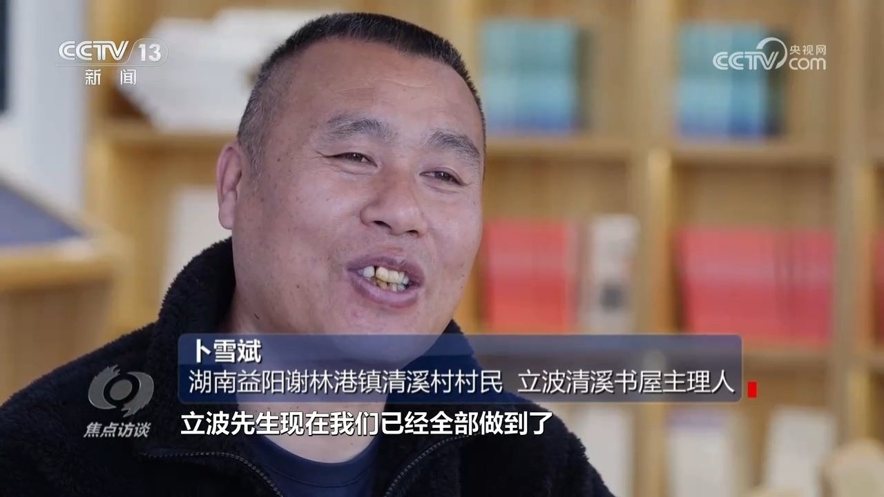 湖南益陽謝林港鎮(zhèn)清溪村村民、立波清溪書屋主理人卜雪斌:“這個時間我記得清清楚楚,村里是2022年3月16日,第一次到我家里來,宣傳書屋的構(gòu)想,3月19日做設(shè)計(jì)方案的就過來了,3月22日基本上就動工了?!?/p>