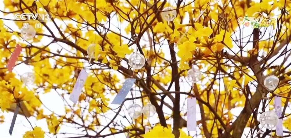 眼下正是黃花風(fēng)鈴木的最佳觀賞期,在廣西梧州市萬秀區(qū)的一片黃花風(fēng)鈴木成片綻放,金燦燦的風(fēng)鈴花隨風(fēng)搖擺,美不勝收。
