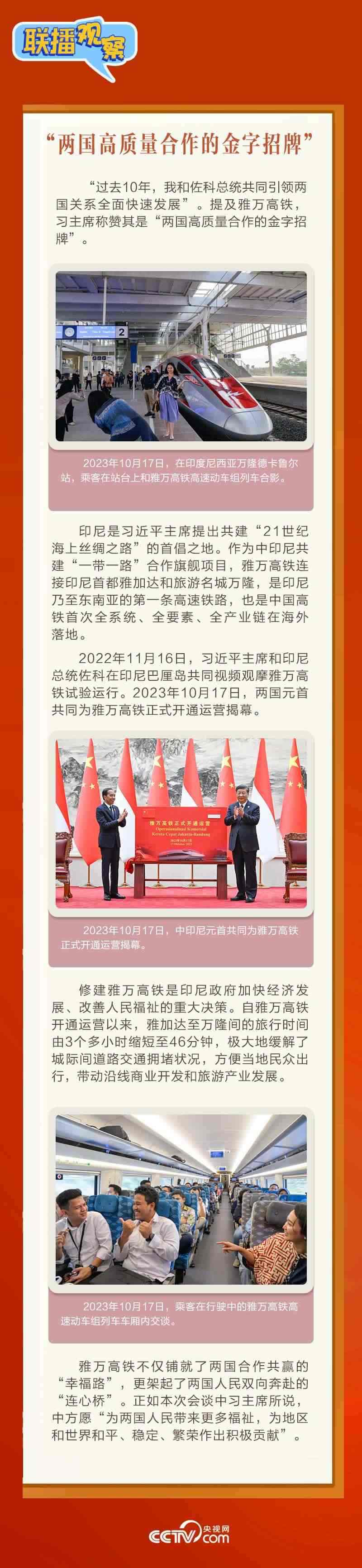 會(huì)談中,習(xí)主席以“船”為喻,稱贊“中印尼友好之輪始終破浪向前”,強(qiáng)調(diào)“愿同印尼深化全方位戰(zhàn)略合作,構(gòu)建具有地區(qū)和全球影響力的中印尼命運(yùn)共同體”。普拉博沃當(dāng)選總統(tǒng)表示“中國是印尼強(qiáng)有力的合作伙伴”,并指出“完全支持發(fā)展更加緊密的印尼同中國關(guān)系”。