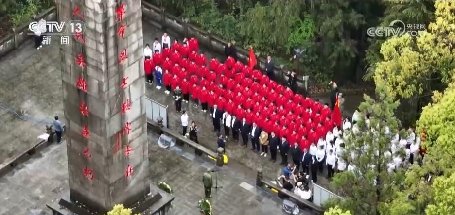 在浙江德清,共青團(tuán)員、少先隊(duì)員、退役軍人同上一堂愛(ài)國(guó)主義教育課,大家擦拭烈士墓碑上的塵土,為烈士碑文描摹、填漆。