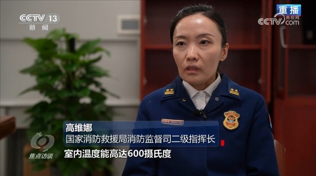 國家消防救援局消防監(jiān)督司二級指揮長高維娜:“30秒鐘就能達到燃燒狀態(tài),3分鐘火焰中心部位的溫度能達到1200攝氏度。如果是在室內(nèi),室內(nèi)溫度能高達600攝氏度,會產(chǎn)生大量有毒煙氣。目前,我們國家沒有專門針對電動自行車火災(zāi)撲救的滅火藥劑。”