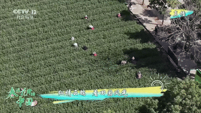縱情云端,九華茶園盡收眼底,郁郁蔥蔥的茶海之間隱約能看到正在采茶的茶農(nóng),放眼望去,茶園就像是一塊巨大的抹茶蛋糕,上面撒著五顏六色的糖豆。