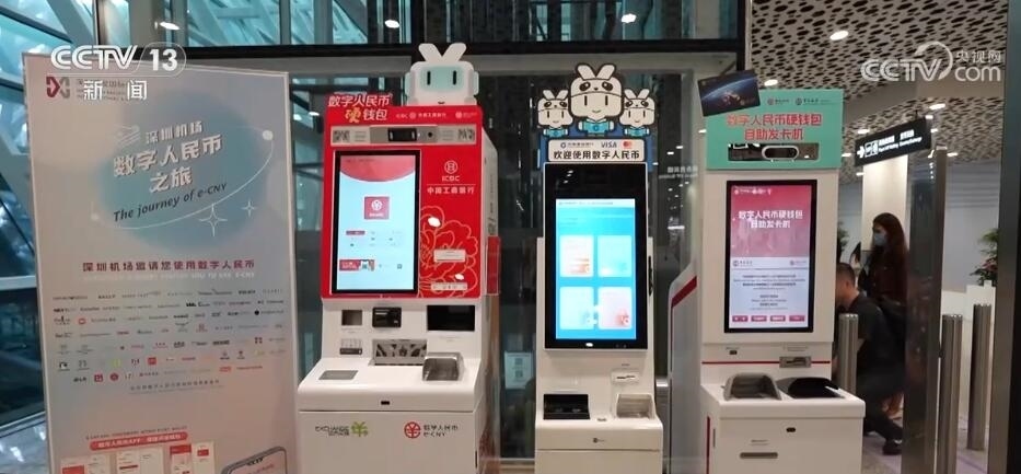 無論是貨幣兌換還是提取現金,都可以在這個到達大廳里完成。據介紹,目前深圳機場商圈已實現外卡受理、移動支付、現金支付、數字人民幣等支付方式全覆蓋,其中外卡受理覆蓋率已經超過90%。